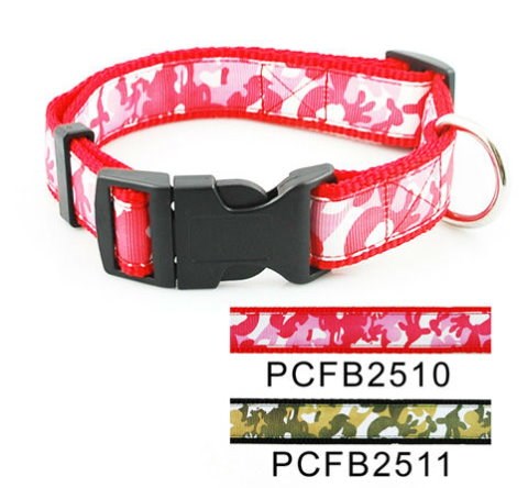 Collier nylon décor Cam long 38cm à 54cm largeur 2,5cm 2 couleurs rouge/vert